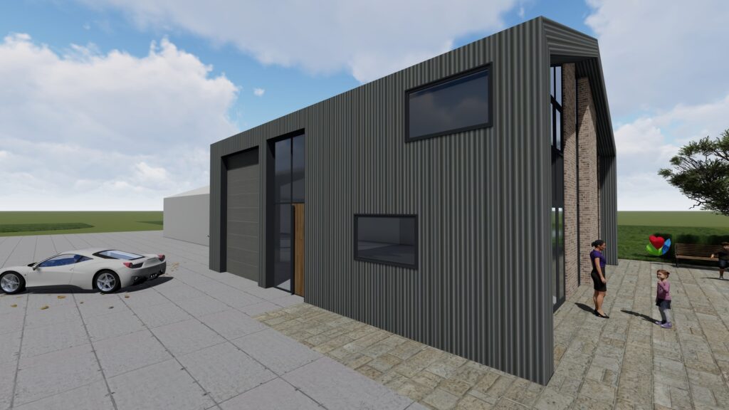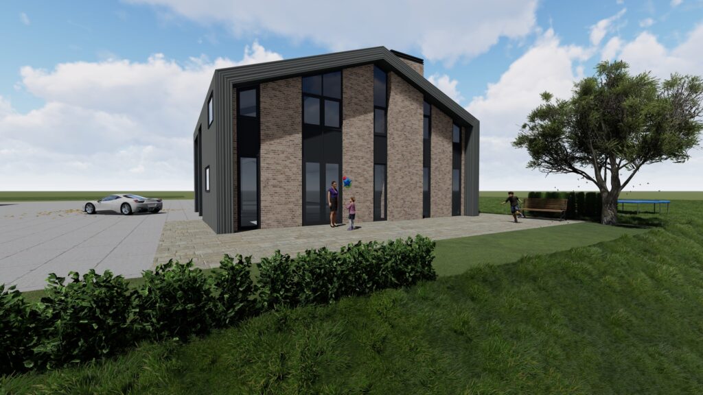 Wij hebben het complete bouwplan gemaakt voor deze stoere bedrijfswoning. De woning wordt gebouwd op het industrieterrein van Urk.