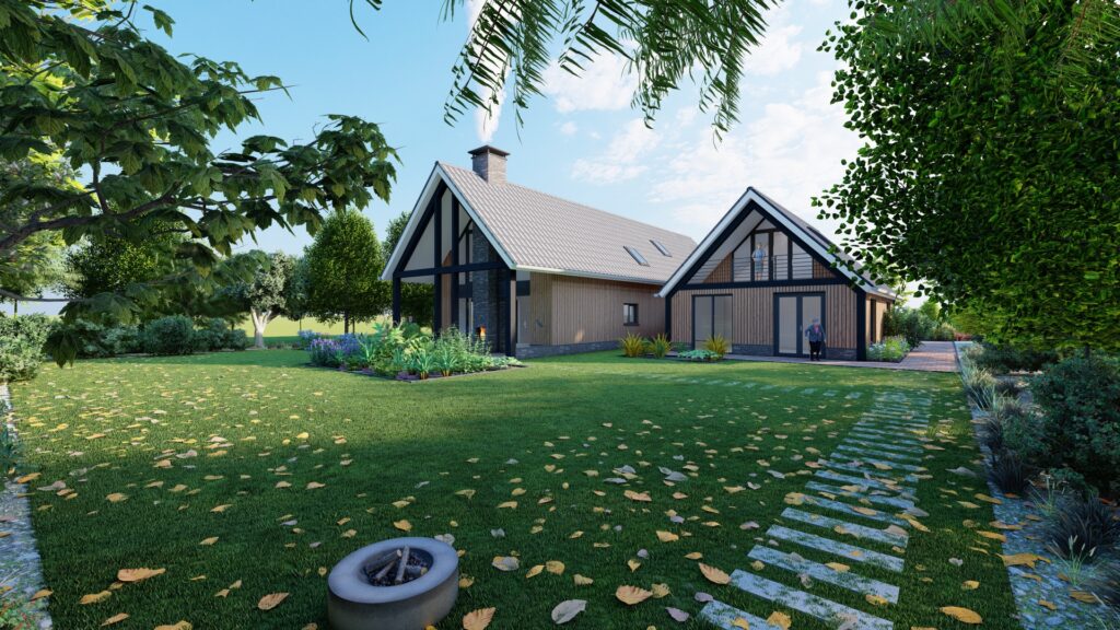 De bouwplannen mogen maken voor deze vrijstaande Schuurwoning. In het bijgebouw is plaats voor 3 Bed and Breakfast kamers.