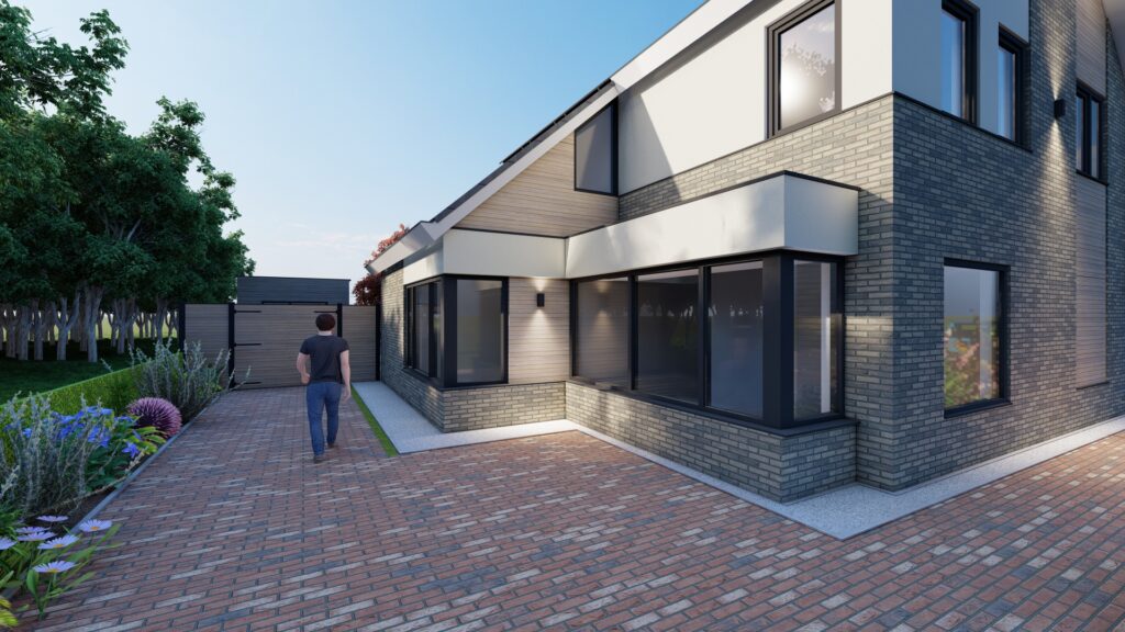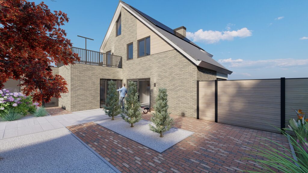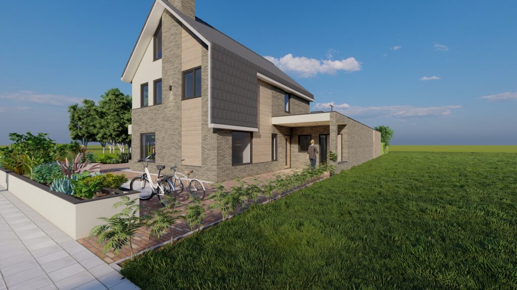 De woning wordt in een nieuw jasje gestoken. Dit geeft de woning een landelijk modern uiterlijk en past perfect bij de wensen van de opdrachtgevers.