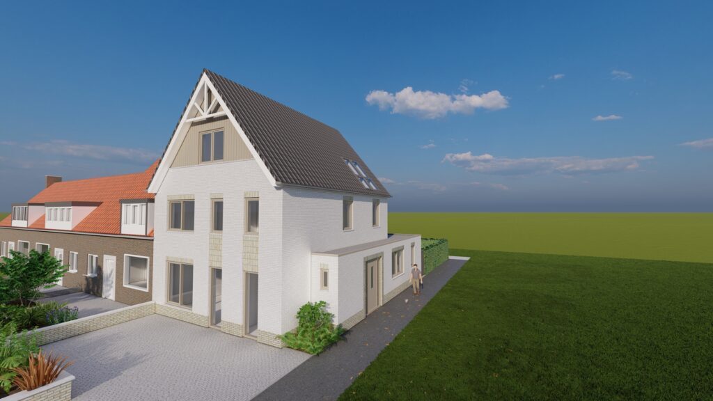 De nieuwe woning heeft een statige uitstraling, wat te danken is aan de keuze van materialen en het ontwerp van de gevel. Door de toevoeging van eigentijdse elementen en het behoud van klassieke kenmerken, ontstaat er een harmonieuze balans tussen oud en nieuw.